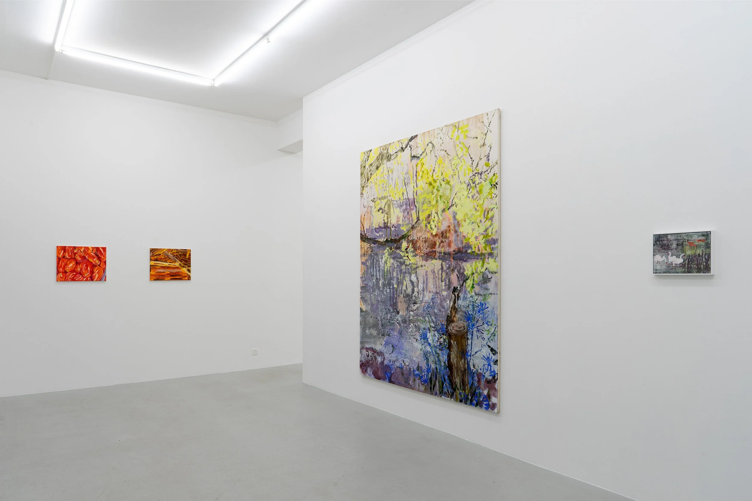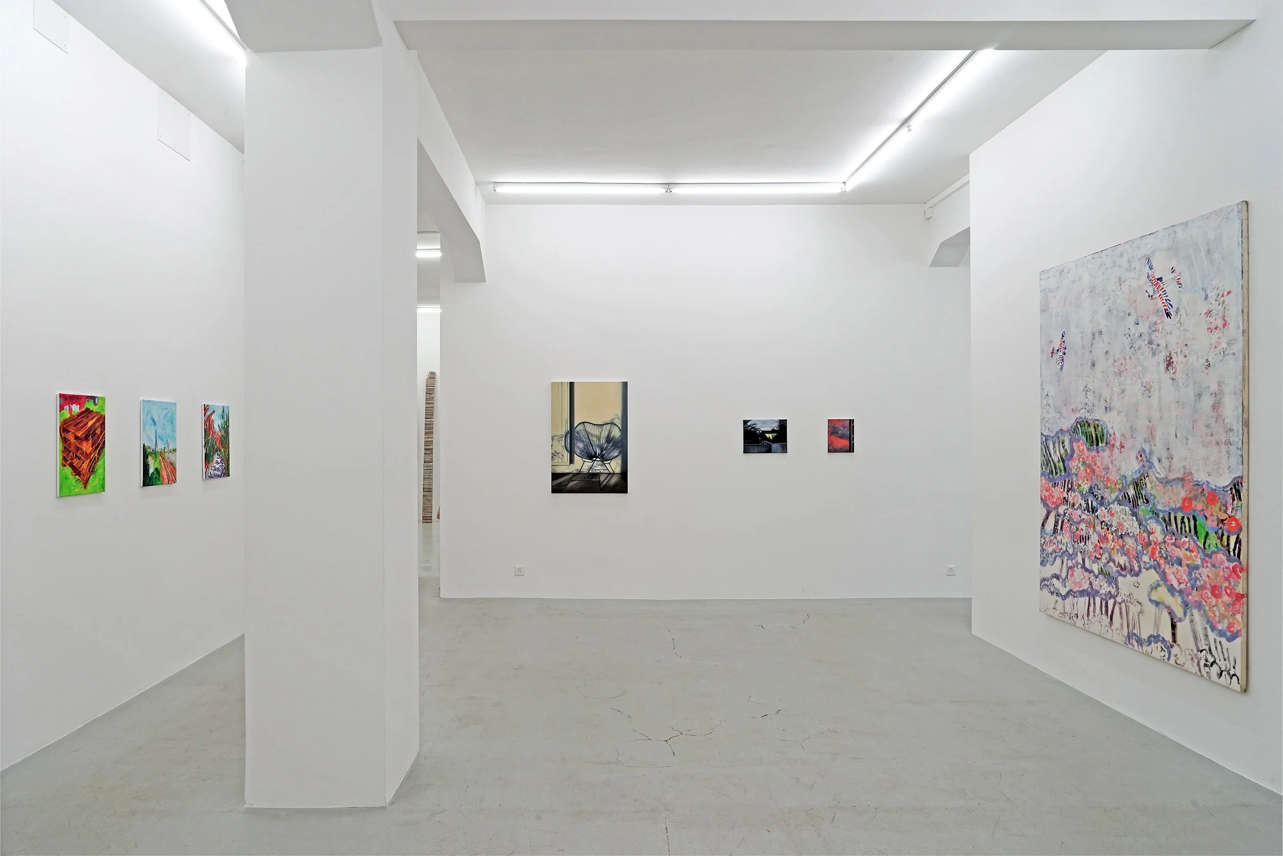 We are very pleased to introduce the group exhibition Maison – Voyage – Paysage. This exhibition presents three positions of figurative painting in Switzerland through works by Anna Krammig, Rachel Lumsden and Pascal Sidler. The keywords in the exhibition title can be associatively linked to the thematic orientation and formal approaches of the three artists.