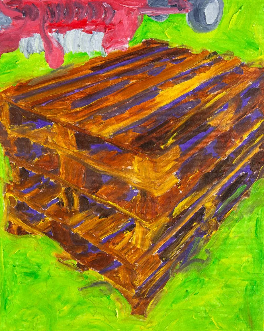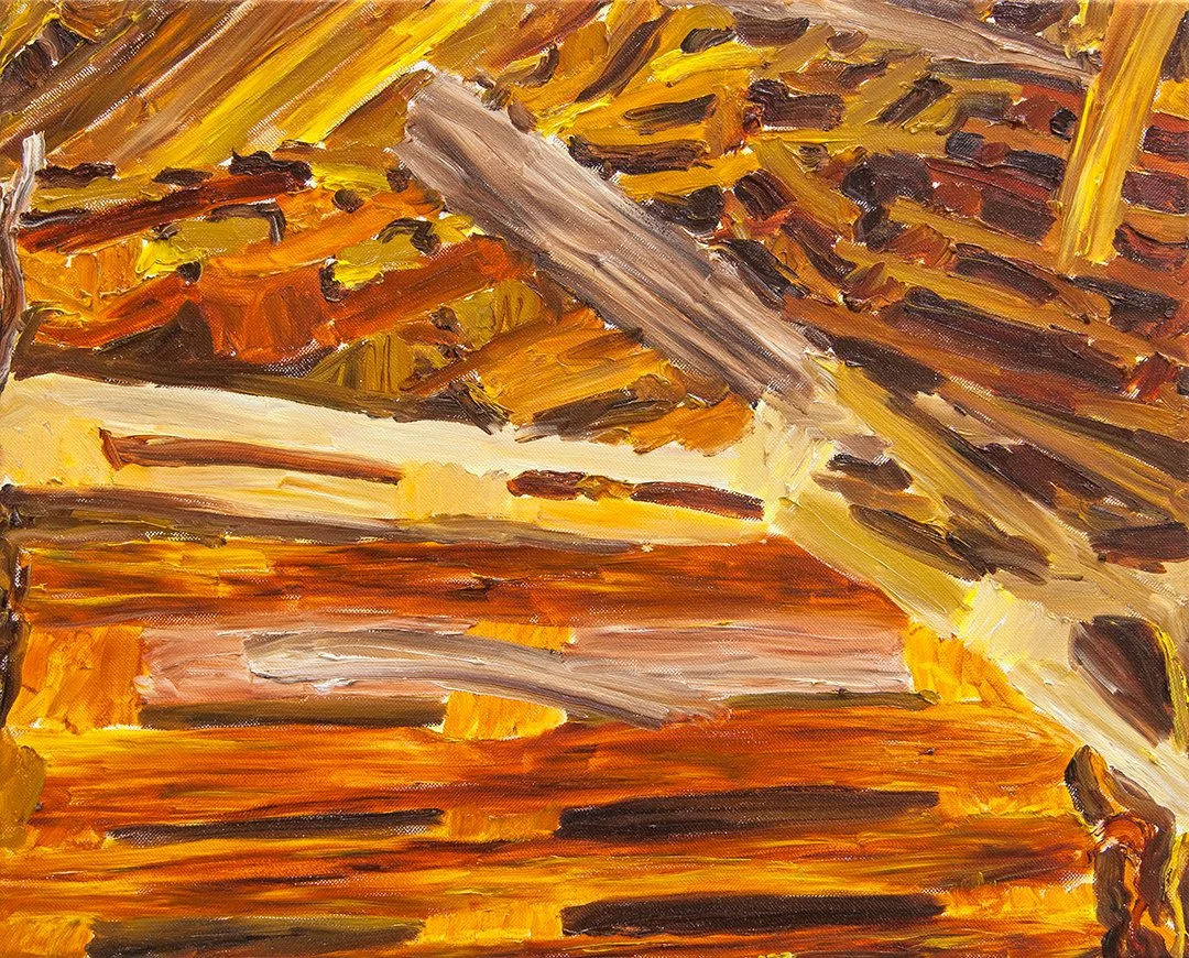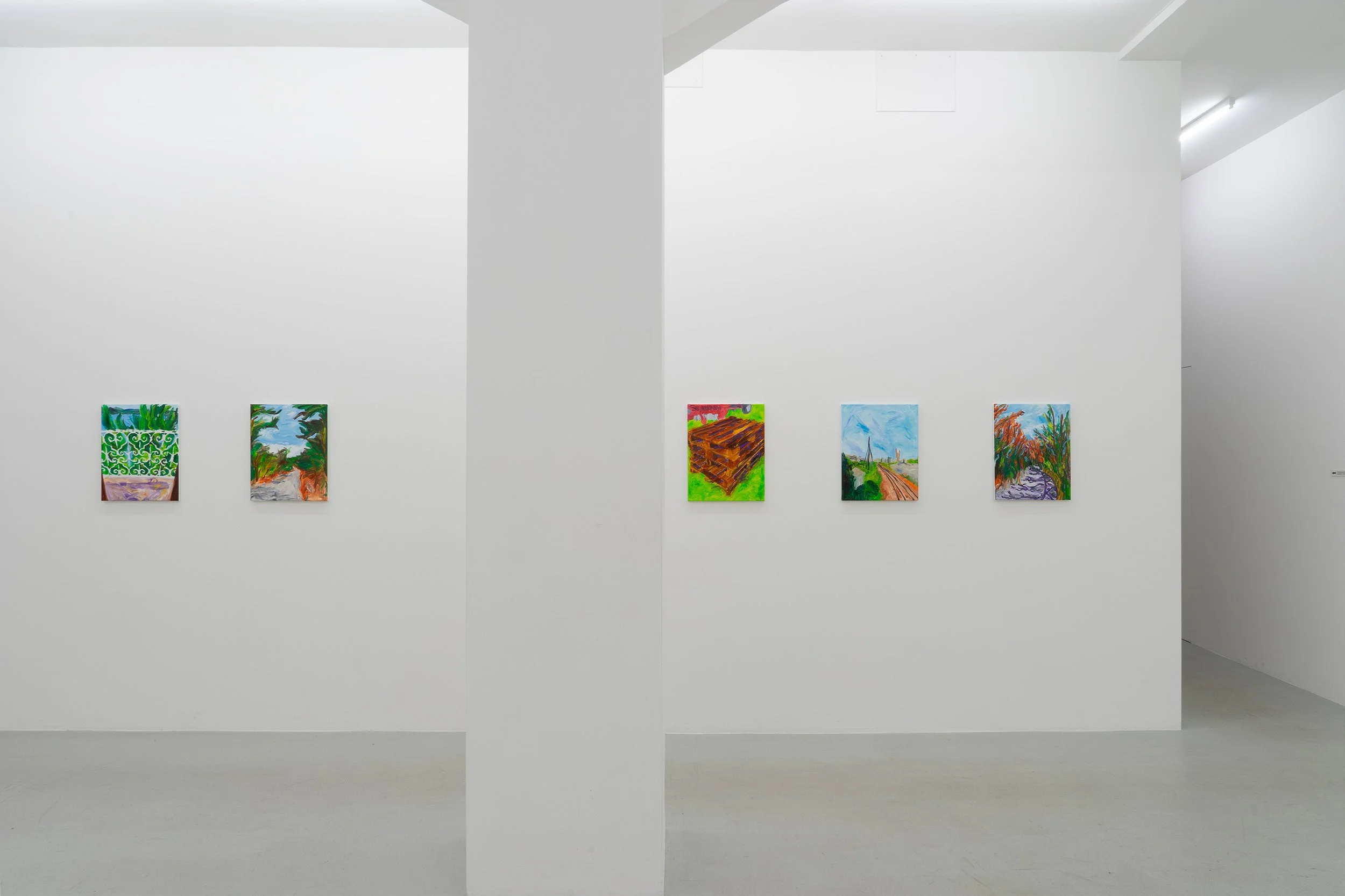 After studying art in Zurich and Basel from 2010 to 2015, Pascal Sidler devoted himself to a range of different painterly approaches. Initially, he explored his immediate living environment in large-scale figurative oil paintings: a stairwell, a group of bicycles, a frying pan, a park bench, legs on a sofa, and so on. He then turned to abstraction, breaking down smartphone photographs on the computer using 3D software into linear and planar elements, and subsequently constructing multilayered images in a further working process that display a high degree of artificiality. Since 2024, Sidler has been working on a group of smaller figurative oil paintings which, at first glance, appear completely different from his abstract computer-based experiments. On closer inspection, however, it becomes clear that the two bodies of work share notable similarities in their approach. The representational paintings also contain a sense of casualness in their depiction. The motifs might seem arbitrary, which is further intensified by the titles and the free painterly manner of the works. The discrepancy between image and title creates a peculiar semantic void that calls for interpretation. The titles confer an additional layer of meaning on the paintings – most of which are landscapes – that, in a surprising way, does not correspond to the visual representation.